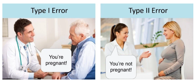 在統計學中,我們通常從不確定性中獲得確定性,所以這也代表著你仍然會犯錯誤。說到錯誤,這里有兩個在頻率統計學中可能犯的錯誤: