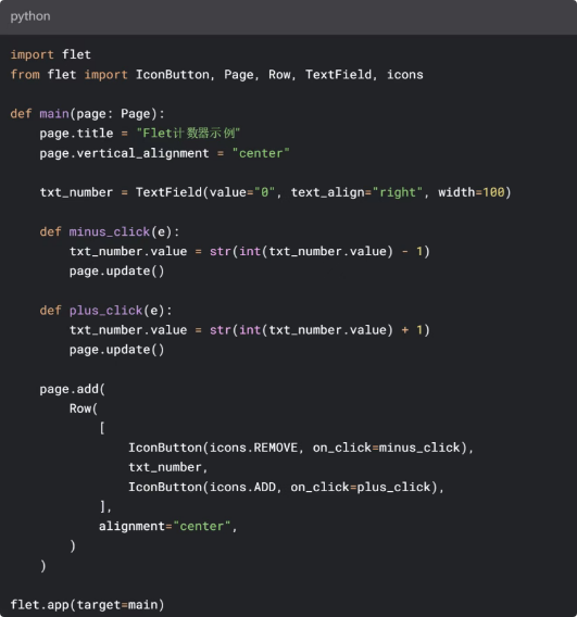 它通過將Flutter的小部件組合成具有命令式編程模型的即用型“控件”來簡化開發流程。這意味著,你可以用最熟悉的Python語法,開發出在多個平臺運行的現代應用程序。01 Flet框架的核心特點