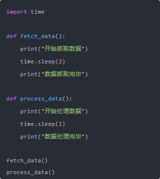 這段代碼執(zhí)行下來(lái)要3秒,抓數(shù)據(jù)的時(shí)候程序就卡那兒等,等數(shù)據(jù)抓完了再去處理。這就叫同步,典型的一步一步走流程,像是排隊(duì)打飯,前面的人不動(dòng),你就只能干等著。