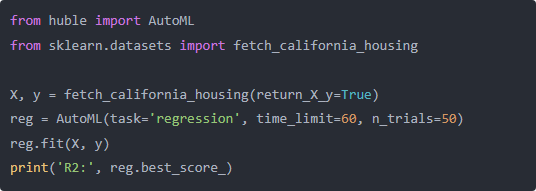 加州房價當靶子,huble 自動在 60 秒內試 Linear、Tree、XGBoost,像相機切濾鏡。