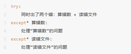 以前程序同時出好幾個錯(比如又算錯數、又讀錯文件),你得寫好幾段 “防錯代碼” 一個個處理;現在可以把多個錯誤打包,用一段代碼分別應對,比如: