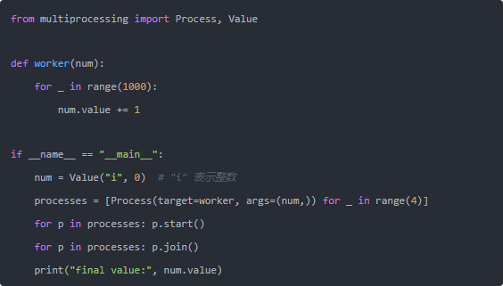 到了共享內存就更直接了,相當于辦公室墻上貼了個白板,所有人拿著筆在上面寫。multiprocessing 提供了 Value 和 Array,還有 3.8 之后的 shared_memory 模塊,可以在進程間共享 numpy 數組之類的東西。