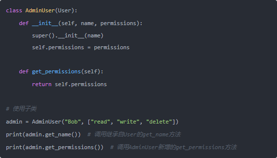 通過繼承,我們擴展了User類的功能,而不需要修改原始的User類代碼。