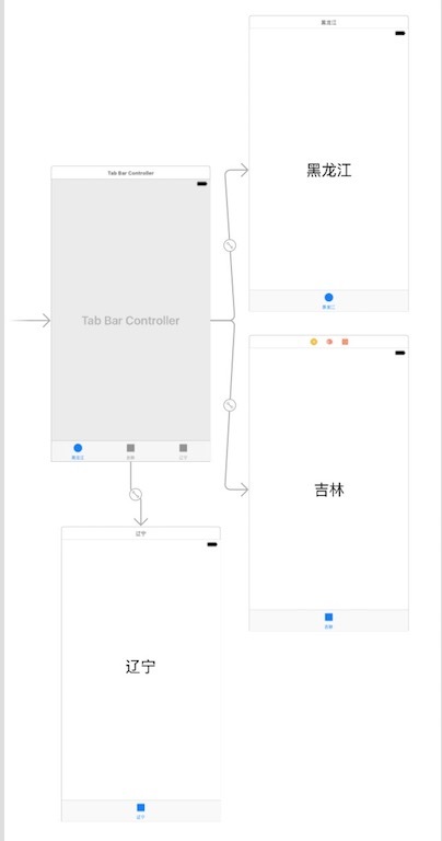 添加ViewController和Tab Controller Scene的連線,具體操作是:按住control鍵從Tab Controller Scene拖曳鼠標到ViewController,釋放鼠標,從彈出窗口中選擇view controllers項即可