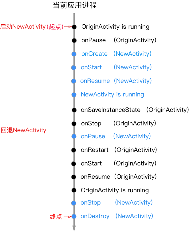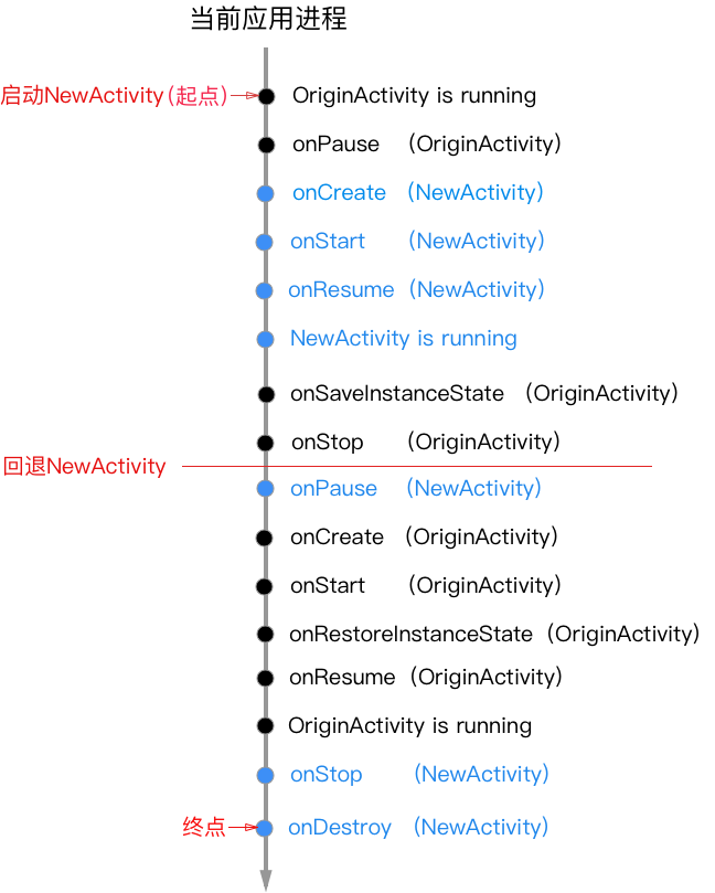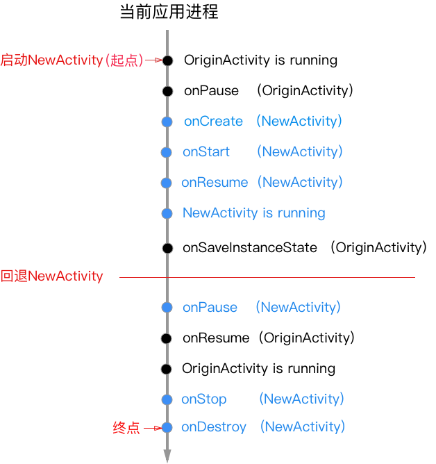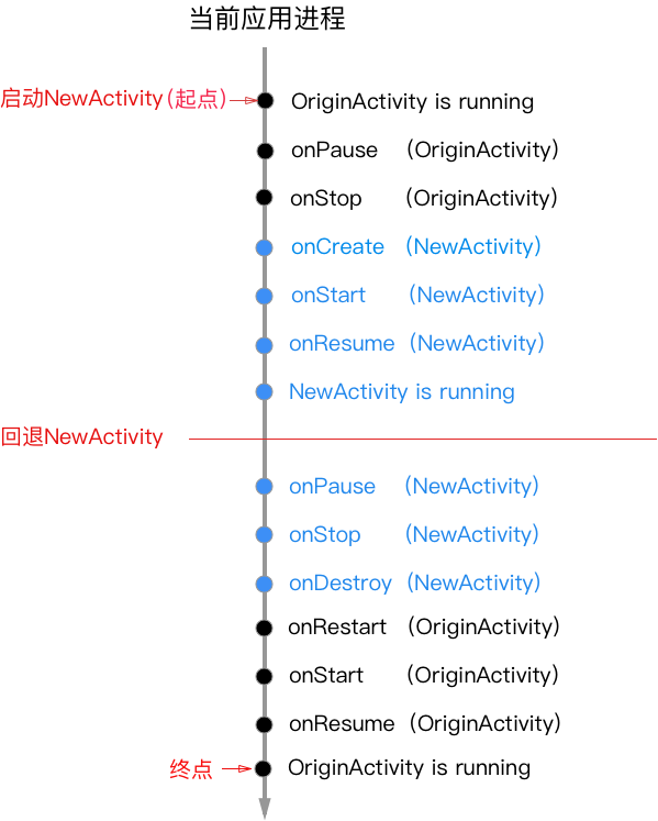 - 啟動一個正常的NewActivity(完全遮擋OriginActivity),之后回退到正常狀態的OriginActivity。