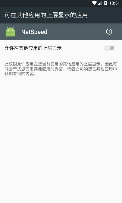 該函數(shù)首先檢查APP是否有顯示懸浮窗的權(quán)限,如果沒有,就跳轉(zhuǎn)到該APP設(shè)置懸浮窗權(quán)限的界面,如下圖所示: