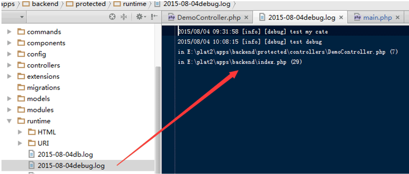 //找到配置文件 component->log 'log'=>array( 'class'=>'CLogRouter', 'routes'=>array( array( 'class'=>'CFileLogRoute', 'levels'=>'warning,error,info' , ),