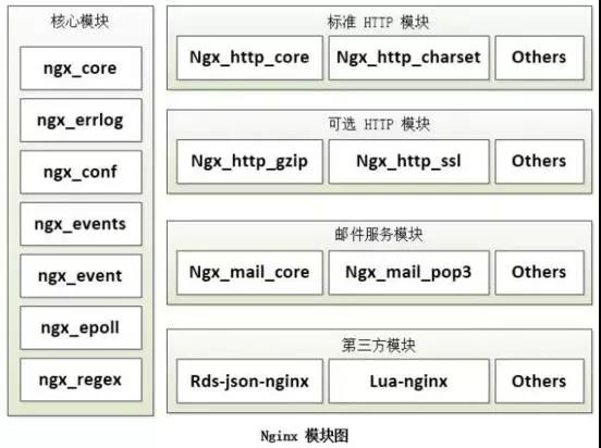 Nginx 的Worker 進程,包括核心和功能性模塊 ,核心模塊負責維持一個運行循環( run-loop ),執行網絡請求處理的不同階段的模塊功能,比如:存儲讀寫、內容傳輸 、網絡讀寫 、外出過濾 ,以及將請求發往上游服務器等。而其代碼的模塊化設計 ,也使得我們可以根據需要對功能模塊進行適當的選擇和修改 ,編譯成具有特定功能的服務器。