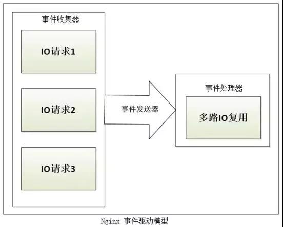 如上圖所示, Nginx 的 事件驅動模型由事件發送器、事件收集器和事件處理器三部分基本單元組成: