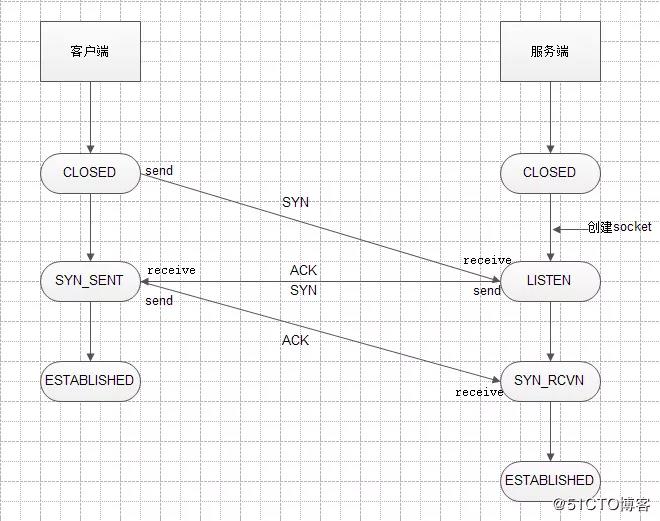 1、一開始,建立連接之前服務器和客戶端的狀態都為CLOSED;