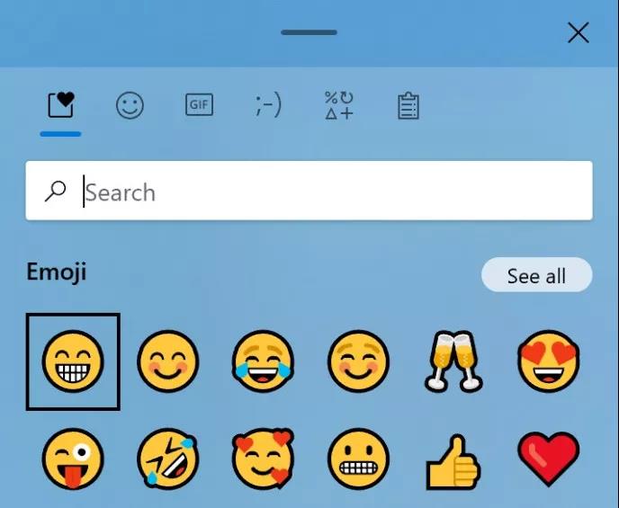 在 Build 20206 中,微軟在 Windows 10 中為部分用戶啟用了至少三個新功能,其中包括遵循微軟 Fluent 設計原則的改版表情符號選取器。
