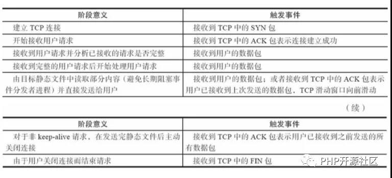 處理獲取靜態文件的 HTTP 請求時切分的階段及各階段的觸發事件如下所示: