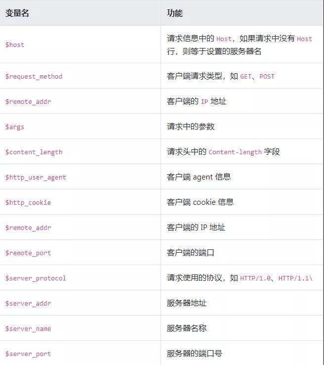下面是 nginx 一些配置中常用的內(nèi)置全局變量,你可以在配置的任何位置使用它們。